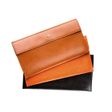 Oblong women's wallet with magnetic button closure. Inside there are two compartments for notes and a compartment for coins with a zipper.